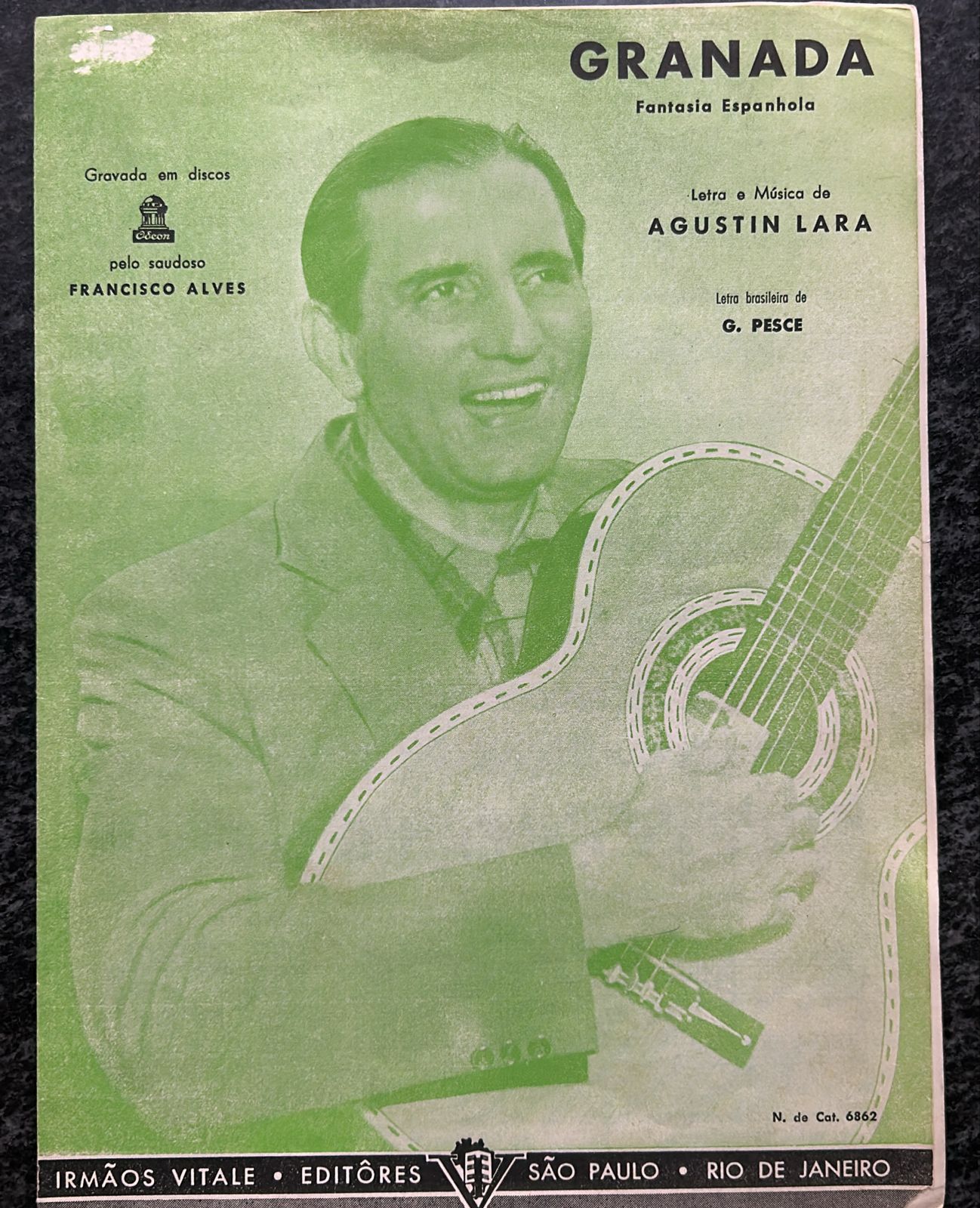 Partitura para piano solo da música: Granada - Fantasia Espanhola. Letra e Música de Agustin Lara. Letra brasileira de G.Pesce. Gravada em discos ODEON por Francisco Alves.
